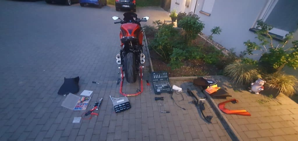 Mittwochabend war endlich gekommen. Am Abend machte sich Paul auf zur Garage das Bike vor die Tür zu holen um bereits die ersten Vorbereitungen für den folge Tag und die Abreise zu machen.