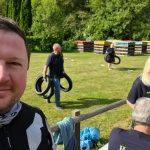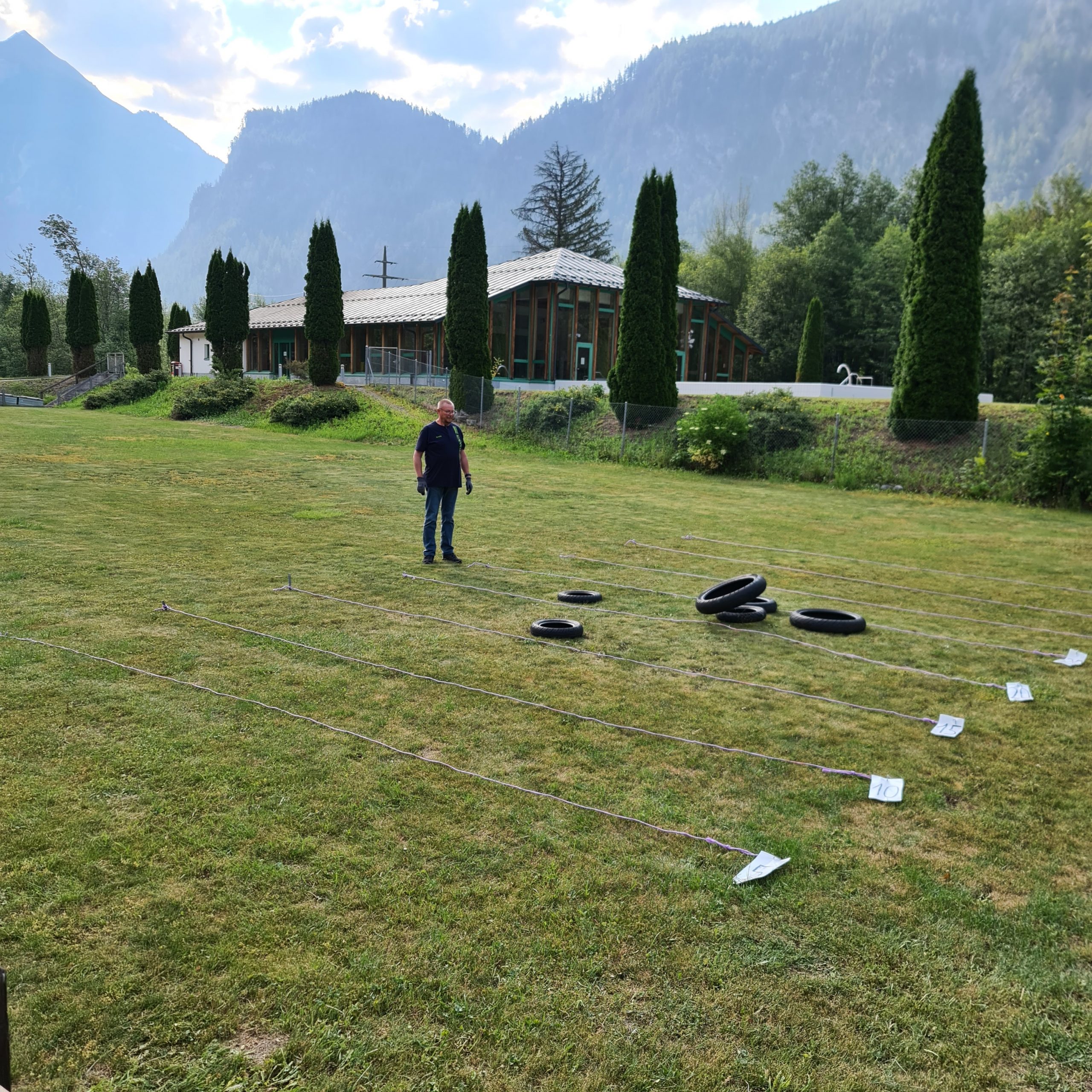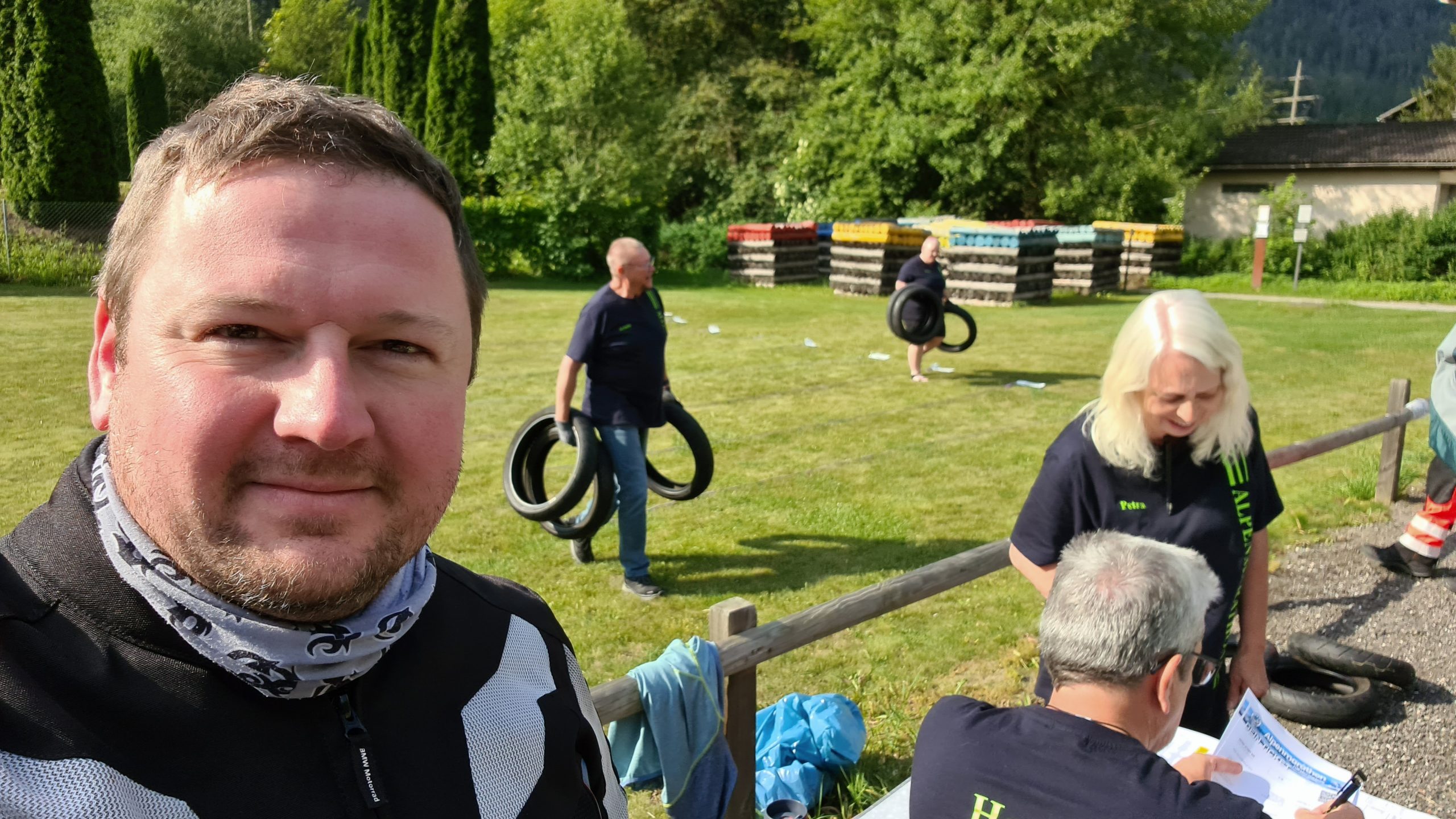 Motorradreifen werfen hieß es nun. Der Clue an der Sache, es kam nicht auf die Wurfkraft an denn wenn man zu weit warf bekam man weniger Punkte als wenn man relativ in der Mitte mit Geschick und dem richtigen Krafteinsatz wirft und trifft. Und so meisterten wir, wie wir fanden diese Aufgabe gar nicht mal so schlecht.