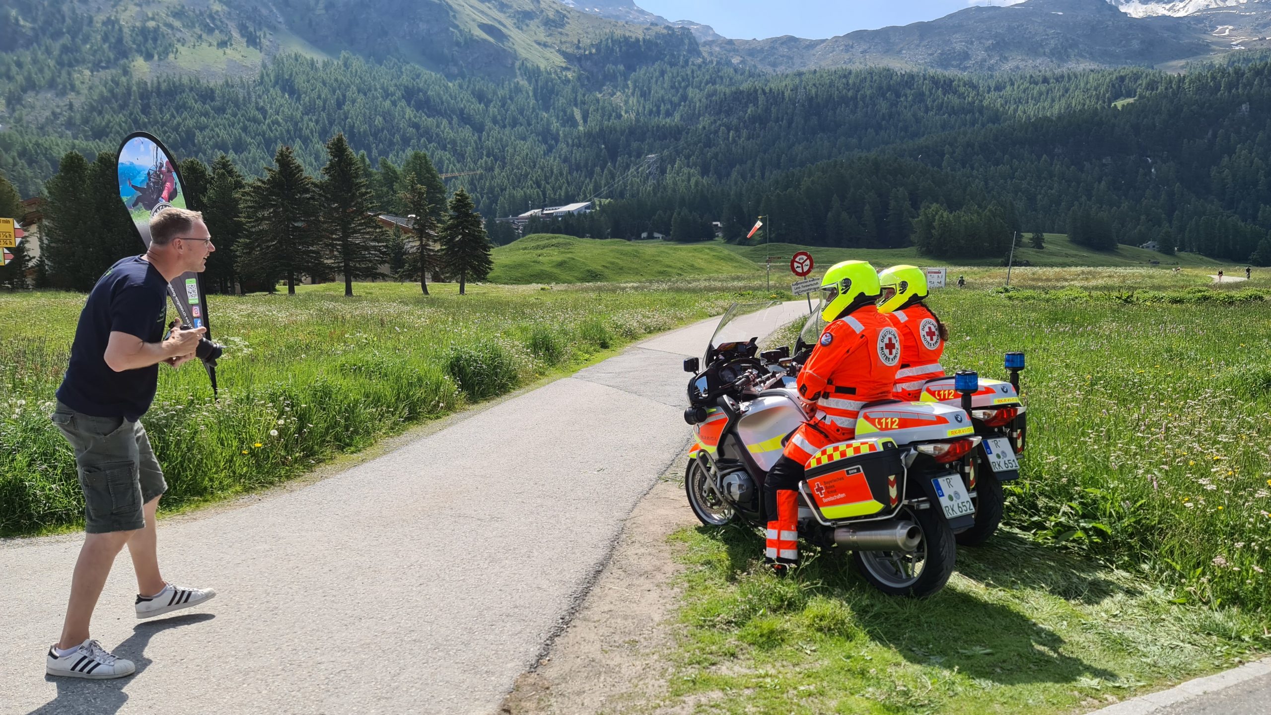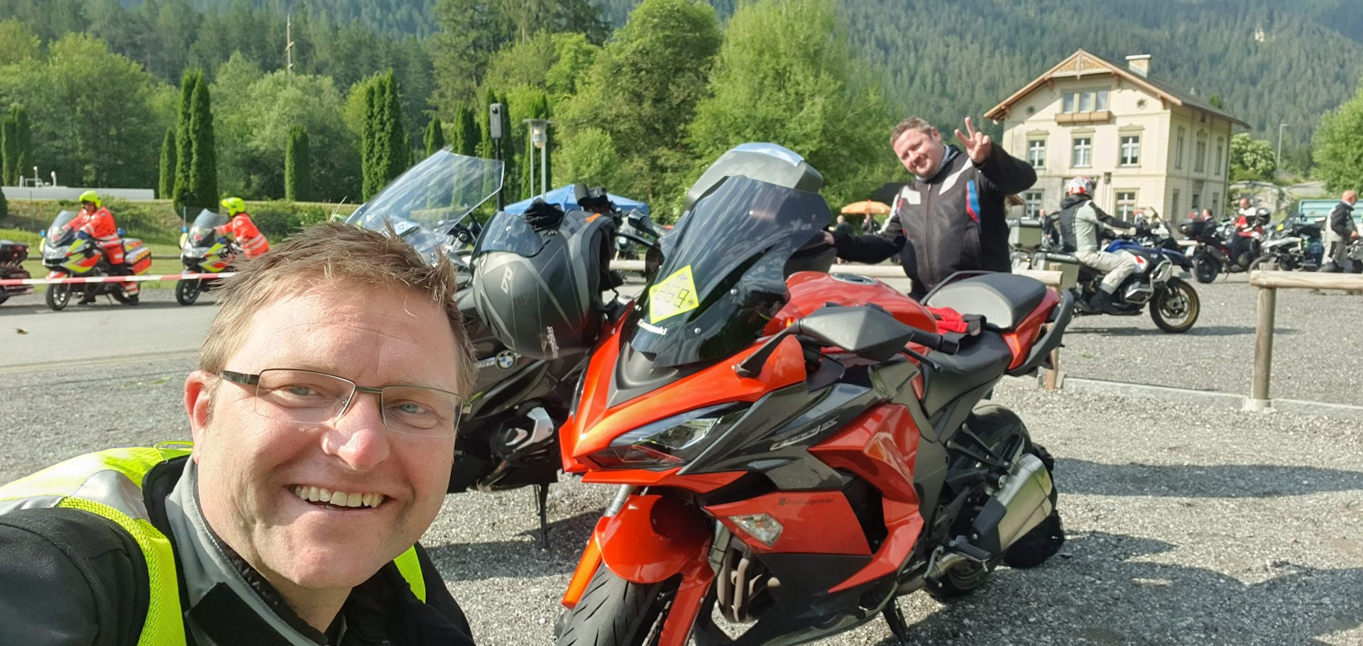 An dieser Stelle möchte ich nun einmal sagen wie begeistert ich war und auch beeindruckt das ein zweier Team des DRK Regensburg dabei war und in Ihrer Freizeit mitgemacht haben und das sie dieses Event auf Ihren Dienstbikes machen konnten. Wir sind an dem Tag das ein oder andere mal einige km zusammen gefahren und es war sehr angenehm und hat einem ein sicheres Gefühl gegeben. Das war toll und genial zugleich und auch muss hier einmal erwähnt werden das ich es persönlich Schade finde das diese Biker, die sich nicht zuletzt auch um uns kümmern im Fall der Fälle Ihre Fahrsicherheitskurse und trainings selber zahlen müssen und dies leider viel zu wenig gefördert wird.