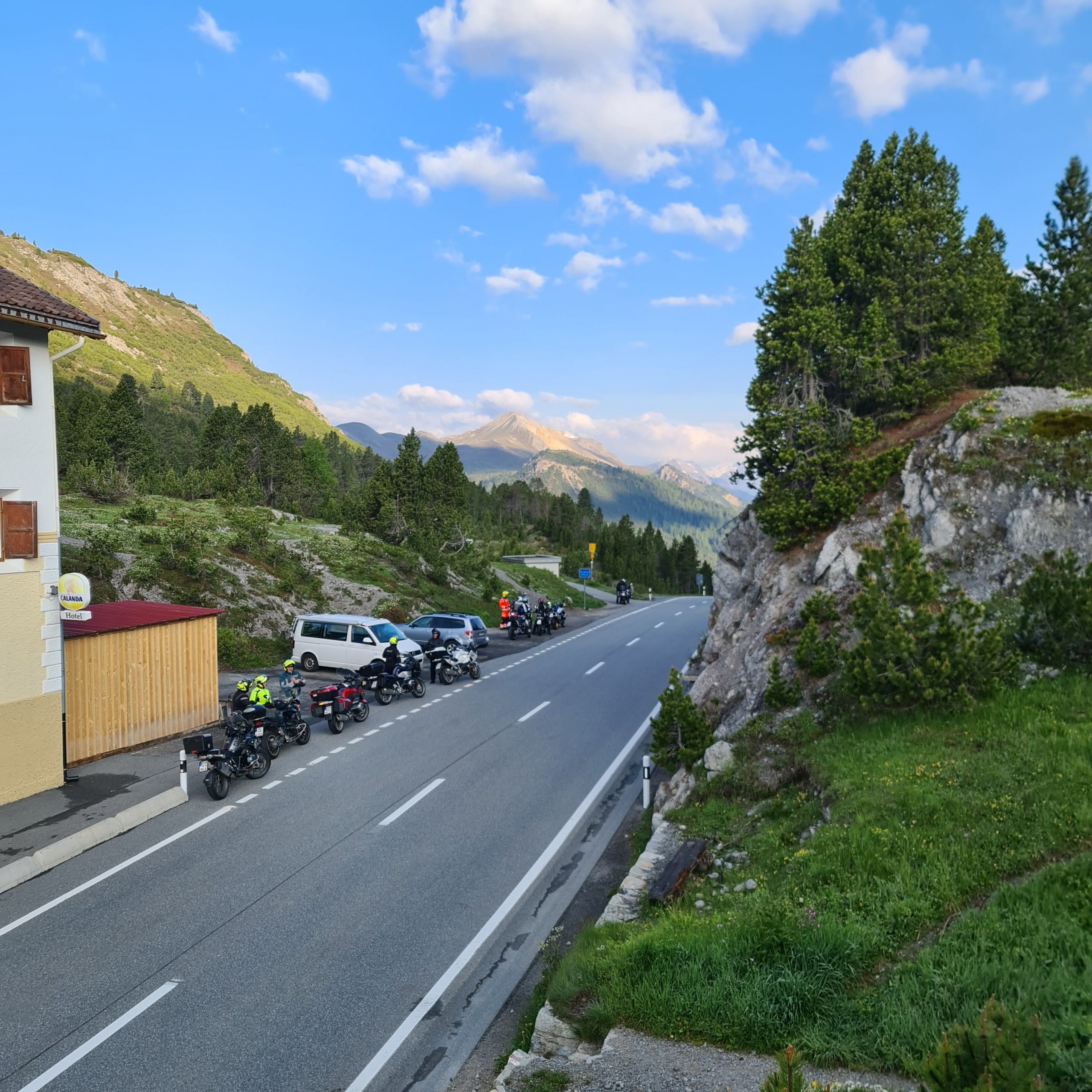 Vom Checkpoint 1 machten wir uns dann ohne weitere große Pause auf um zum nächsten Checkpoint 2 zu kommen. Auf dem Weg hierhin wartete der Flüelpass auf uns. Die ersten engen Kurven und Kehren warteten auf Paul aber mit der nötigen Vorsicht und Weitsicht erreichten wir dann gegen 9 Uhr den 2. Checkpoint. Dieser war am Anfang des Albuapasses. Hier sollten wir nun eine weitere Aufgabe erfüllen.
