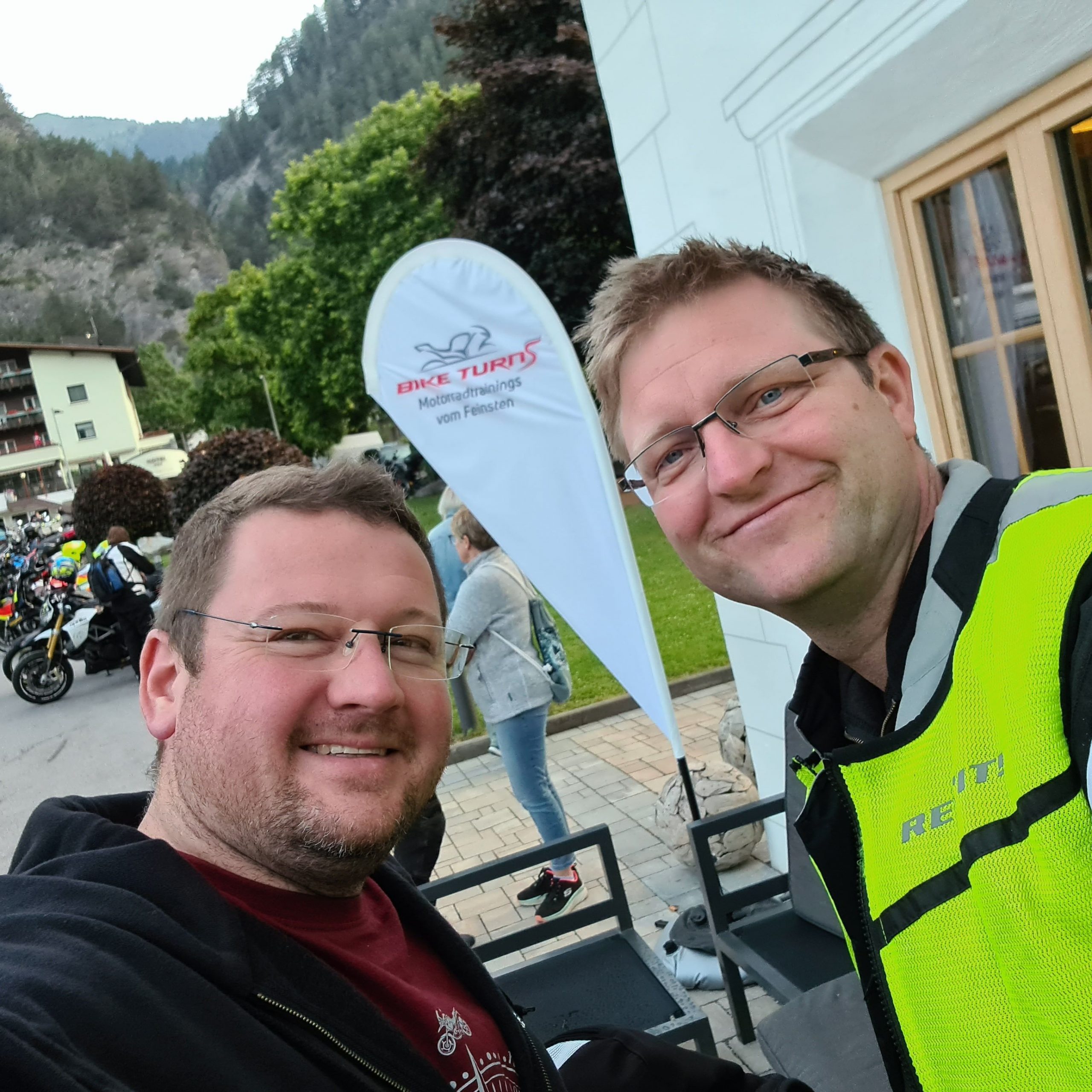 Nach der kleinen Pause ging es weiter durch die Alpen und gegen 16 Uhr erreichten wir unser Ziel. Den Start und Zielpunkt des Alpenmaraton 2023  das Posthotel in Pfunds.