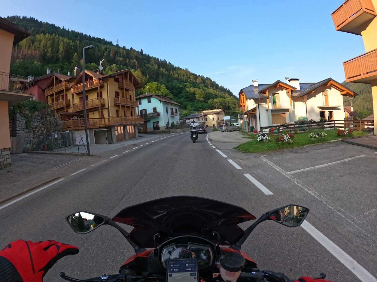 Und so führte uns die Strecke nun entlang der Berge und Städte im Tal bei inzwischen Sommerlichen 31°C in Richtung Italien und zum Passo San Marco.