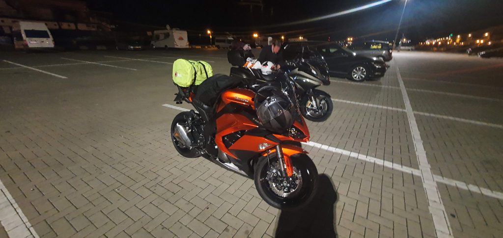 Da es in der Nacht ja alles etwas anders ist auf den Straßen und nicht so einfach dauerte es eine Weile bis wir auf der Richtigen Spur am Terminal uns eingefunden hatten und darauf warteten auf die Fähre gelassen zu werden. Nach ca. 45 min warten in der Spur wurden wir vom Hafenpersonal zwischen den Pkw’s auf Schiff gewunken.