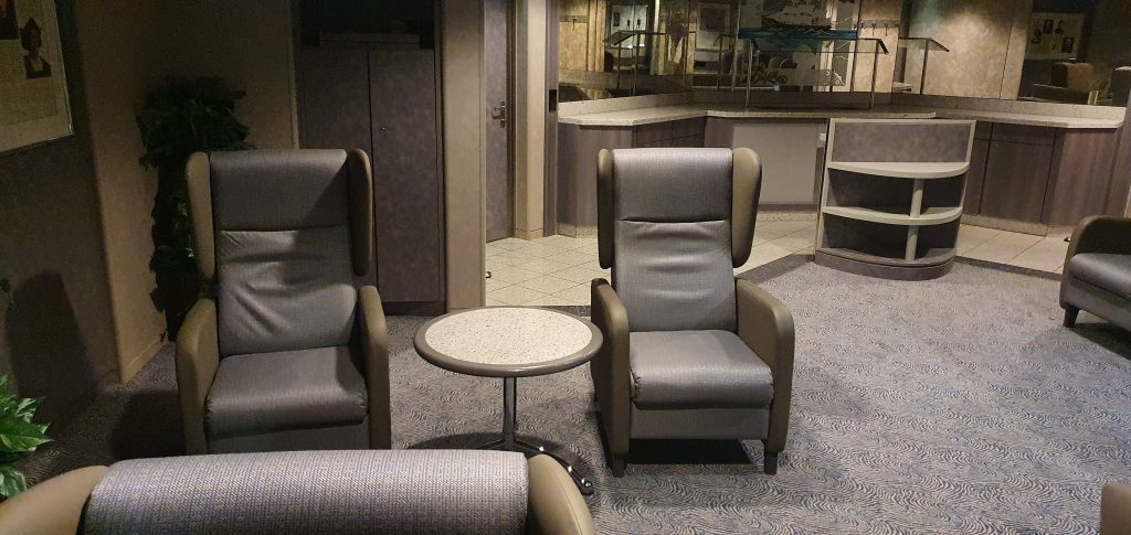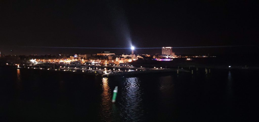 Oben angekommen holten wir also an der Rezeption unsere Schlüssel für den Schlafsesselraum legten unsere Sachen ab und machten uns auf den Weg das Schiff zu erkunden, etwas zu Essen und beim Auslaufen aus dem Rostocker Hafen zuzusehen.