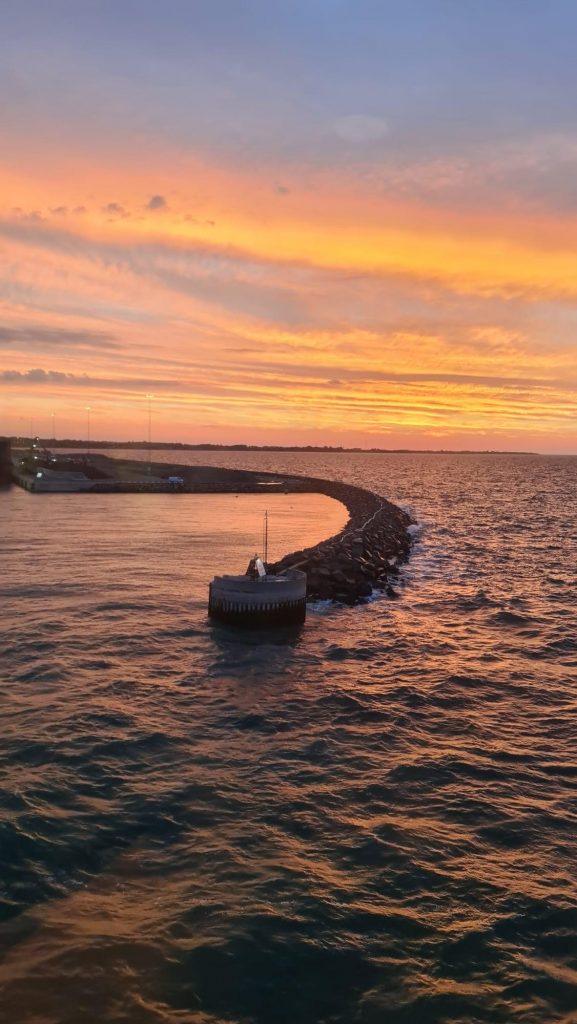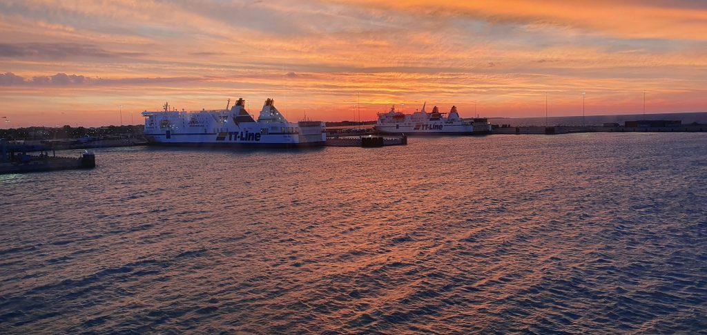 Nach einer doch sehr kurzen Nacht die mehr oder weniger bequem und ruhig war ( viele Schnarchende Trucker 😀 ) erwartete uns am Morgen ein genialer Sonnenaufgang und eine tolle Einfahrt in Trelleborg. Um 06:30 Uhr fuhren wir dann mit den Bikes von Bord die, die Überfahrt aufrecht und ohne Probleme überstanden hatten.