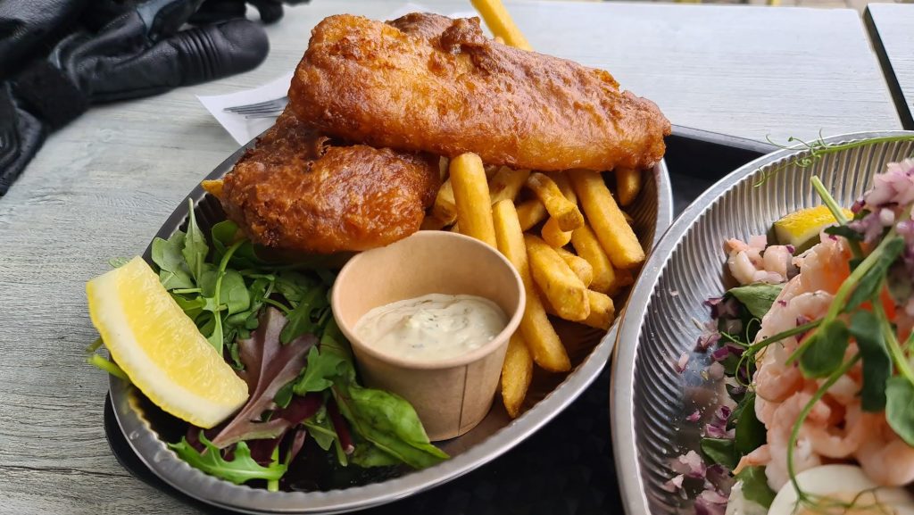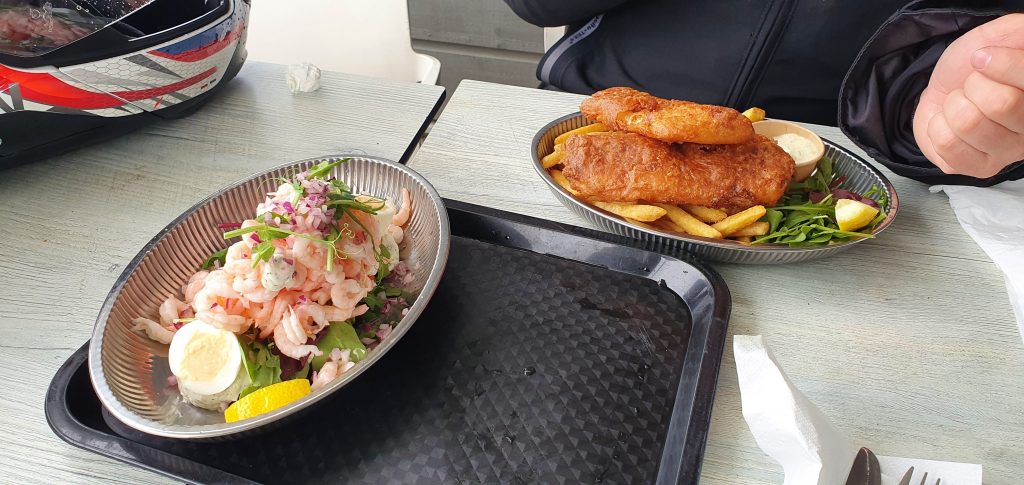 Als wir dann raus kamen fing es tatsächlich doch an zu Regnen dann und nach einem Blick aufs Regenradar meinte Daniel es wäre nur ein kurzer Schauer. Also fuhren wir von der Mosterei rüber zu Buhres Fisk an den Hafen um dort etwas zu Essen.