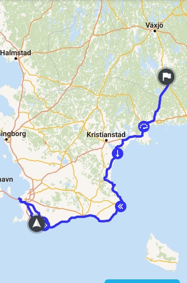 Von hier sollte es dann wie im Video bereits gesagt weiter zurück in die Richtung Trelleborg an die Südlichste Ecke Schwedens gehen um an der Küste Entlag zu Cruisen unserem Ziel Entgegen.
